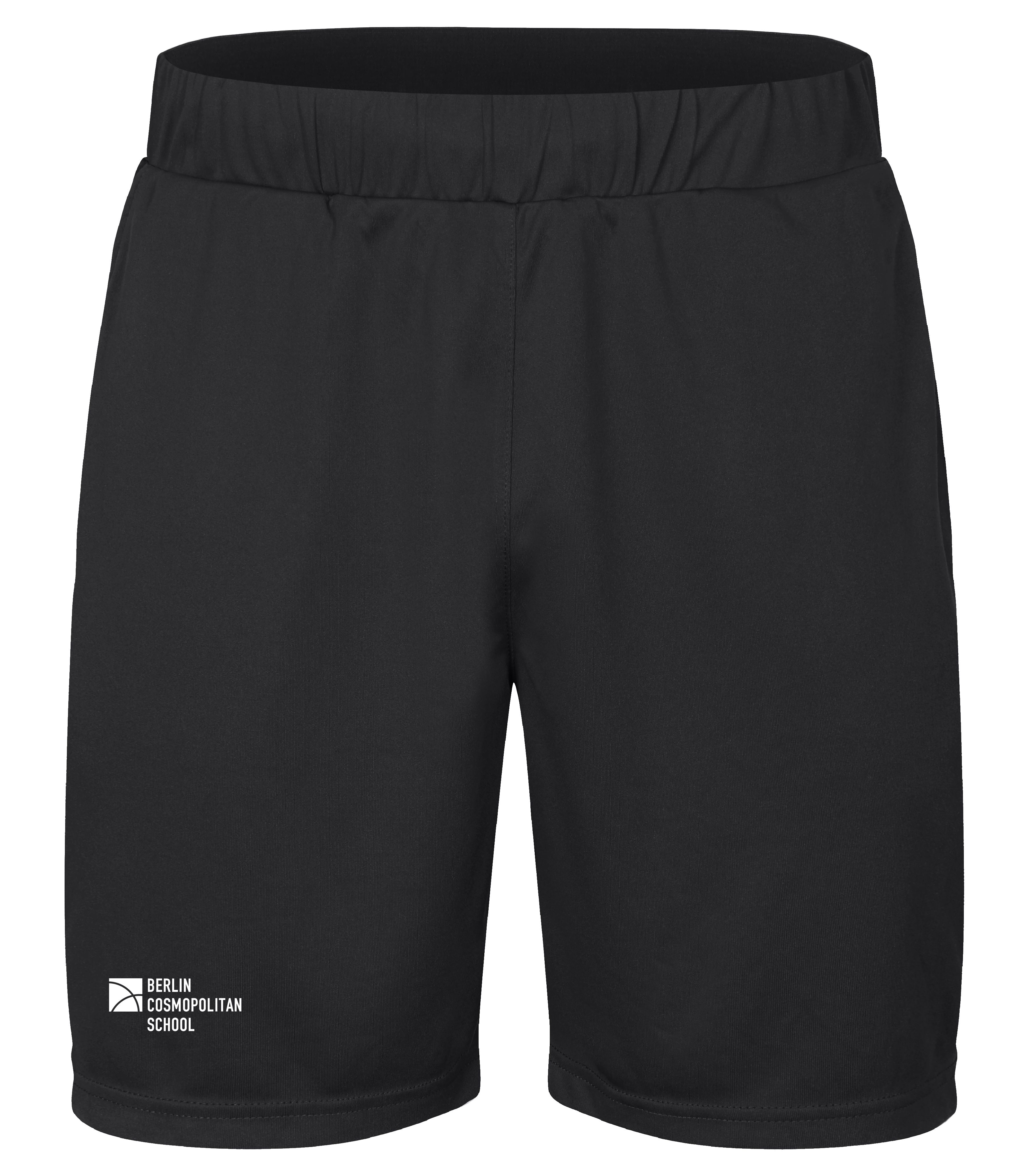 Basic Active Shorts, Unisex, Teens/Erwachsenengrößen, aus Interlock-Gewebe mit Seitennähten, zwei Vordertaschen und elastischer Kordelzug in der Taille, mit gedrucktem Schullogo, 100% Polyester