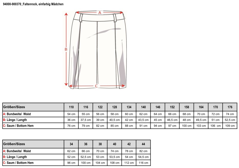 Produktinformationen "Faltenrock, einfarbig Kinder/Teens 110-176"
