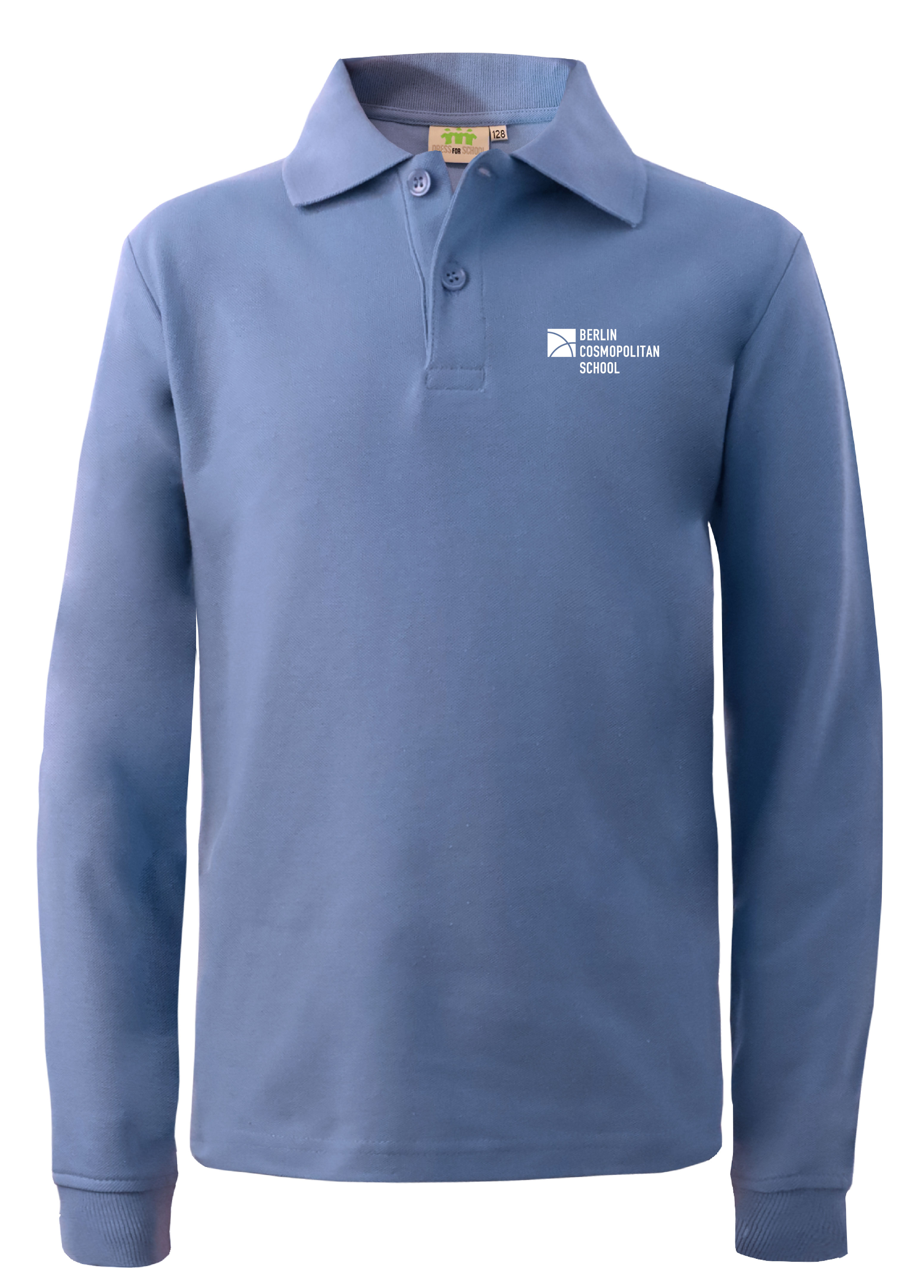 Polohemd, langarm, Unisex, mit gesticktem Schullogo,
